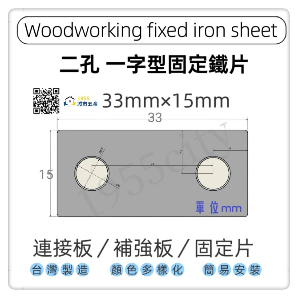 【1955 city】兩孔長型固定直角鐵 [33×15x1.5mm]一字型固定鐵片 固定片 木工 加強 補強 DIY 零件 [烤漆黑色]