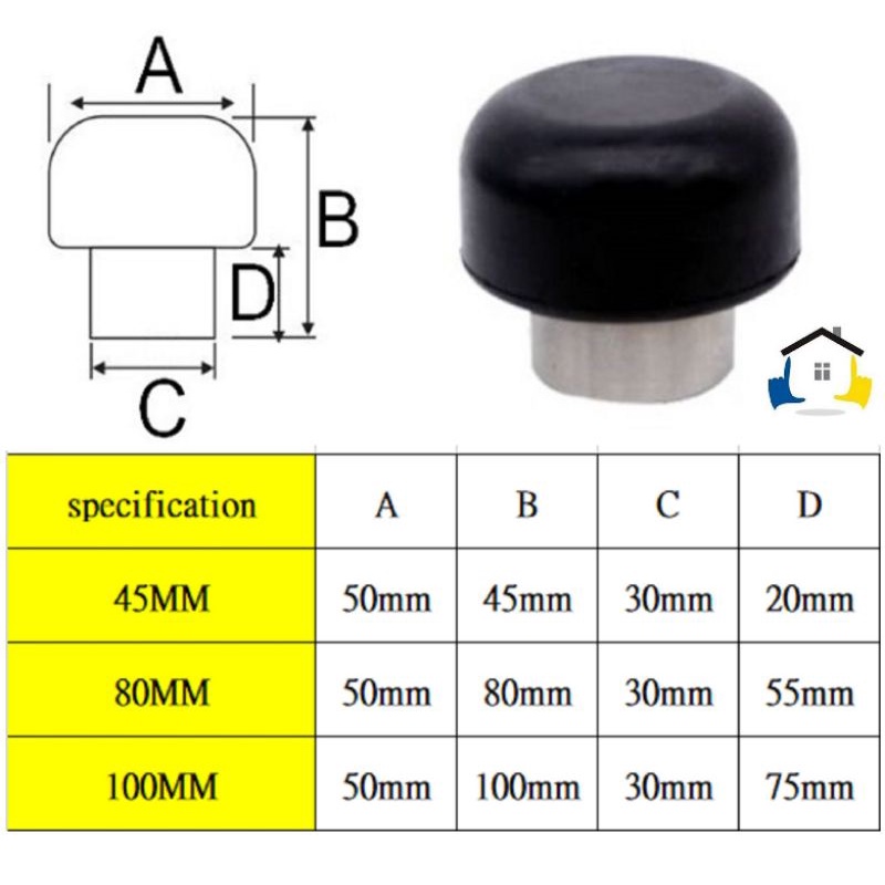 名稱:1132 (#304不銹鋼磨菇頭橡膠門檔 )