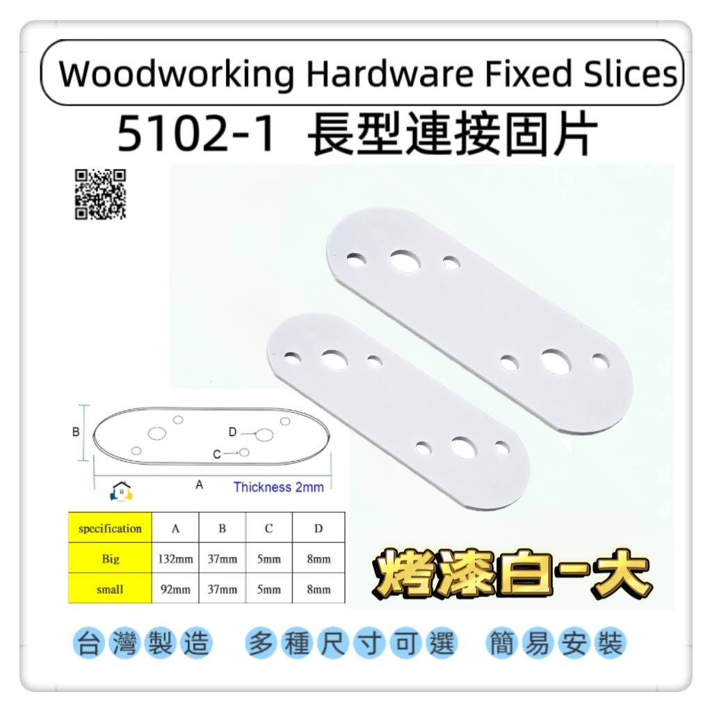 5102-1 一字型圓頭固定片 平版固定片 圓頭長型寬版固定內鐵角
